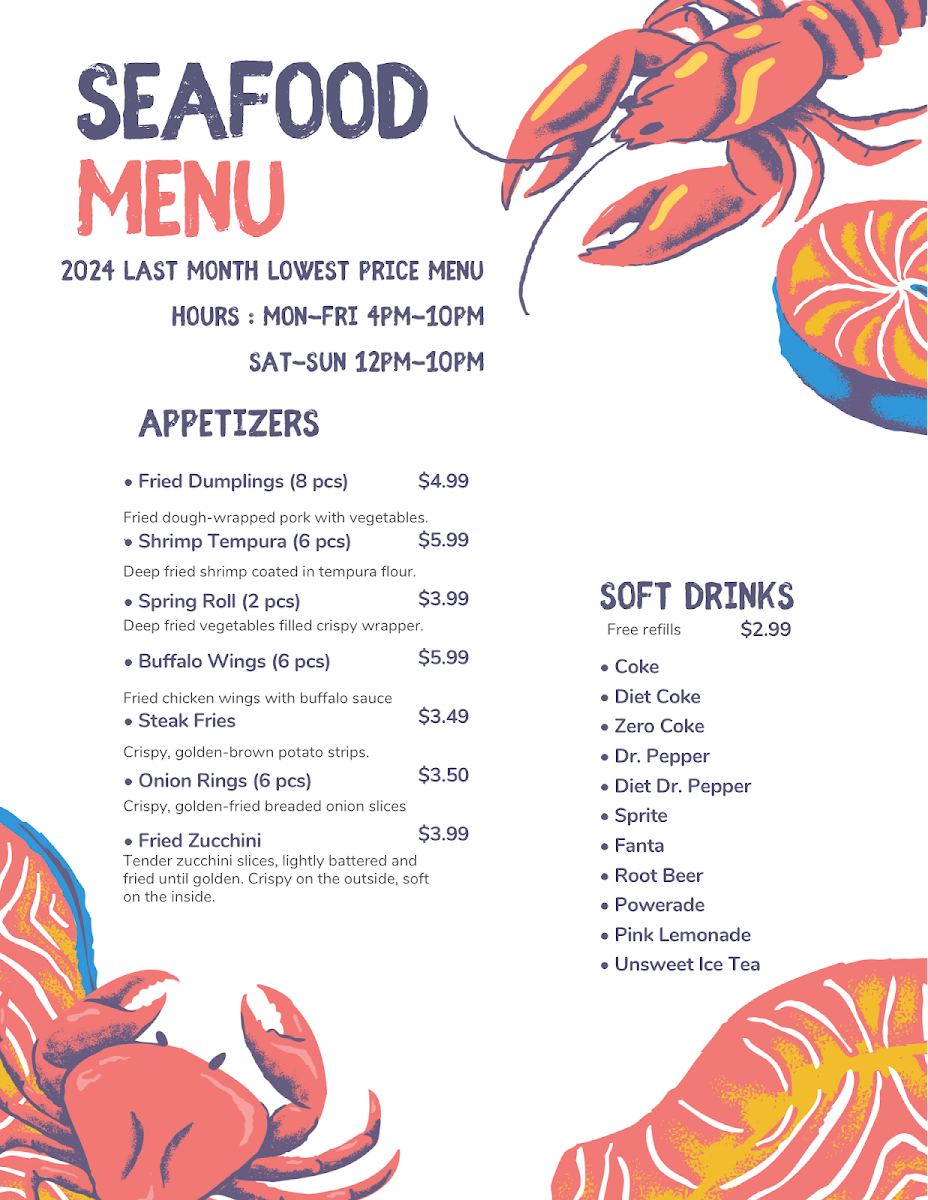The restaurant prides itself not only on the freshness of its seafood but also on the cleanliness and professionalism of its staff. Patrons have noted the importance of temperatures being just right—food served hot and cold items like fresh fruit truly fresh, which adds to the overall quality. With free unlimited drinks included in the price, and the option of boba tea as a fun drink choice, visitors can thoroughly indulge in their dining experience without restraint.